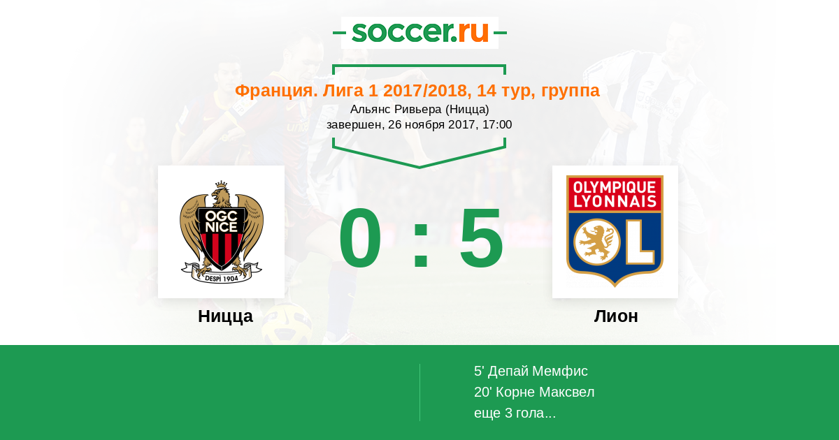 5' (0:1) Депай Мемфис (11) (Корне Максвел (27))