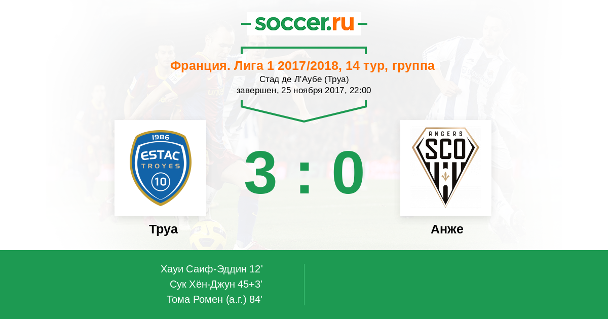 Запасные: 10 Суну Жилль (с 46'), 23 Фулджини Анджело (с 46'), 19 Гийом Баптист (с 74'), 8 Траоре Исмаэль, 17 Сисс Салиу, 21 Пуйо Лоик, 30 Летелье Александр