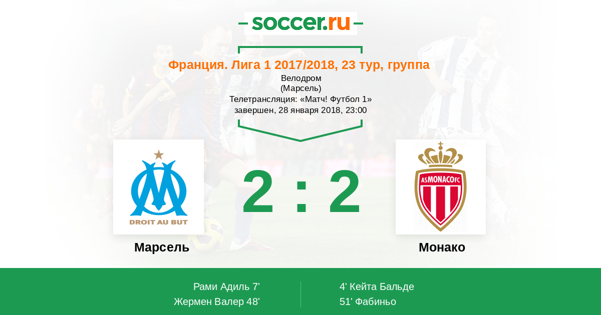 48' (2:1) Жермен Валер (28) (Пайет Димитри (10))
