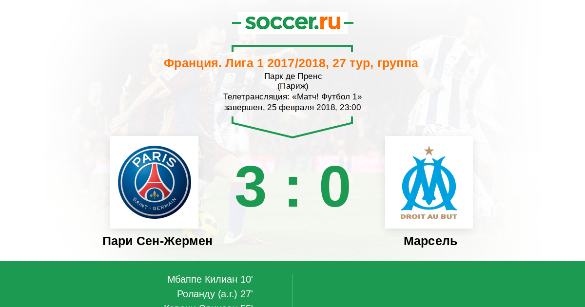 55' (3:0) Кавани Эдинсон (9) (Неймар (10))