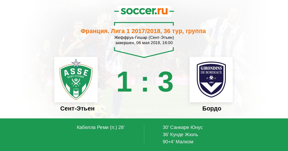 36' (1:2) Кунде Жюль (31) (Кастро Пабло (25))