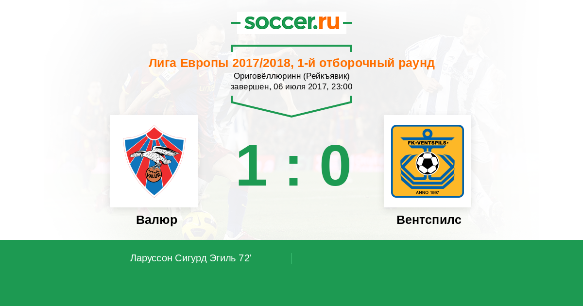 72' (1:0) Ларуссон Сигурд Эгиль (11)