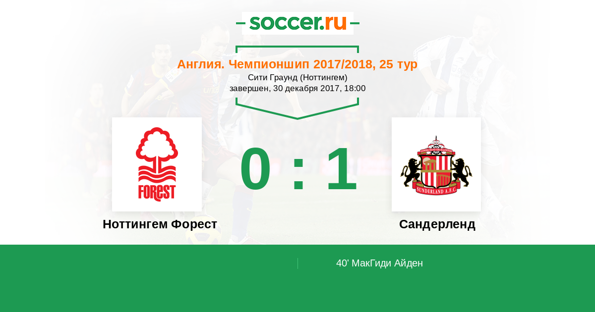 40' (0:1) МакГиди Айден (19) (Мэттьюз Адам (21))