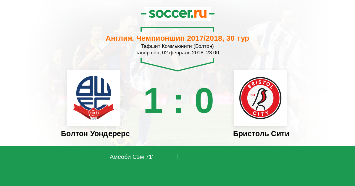 71' (1:0) Амеоби Сэм (10) (Робинсон Энтони (15))