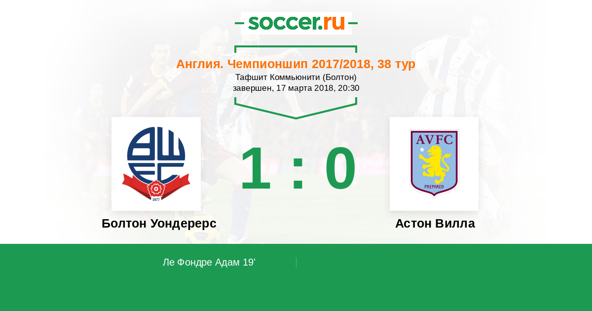 19' (1:0) Ле Фондре Адам (9) (Пратли Даррен (21))