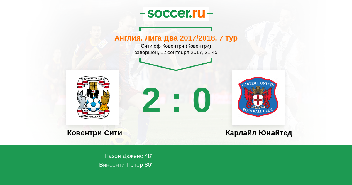 48' (1:0) Назон Дюкенс (18) (Келли Лиам (6))