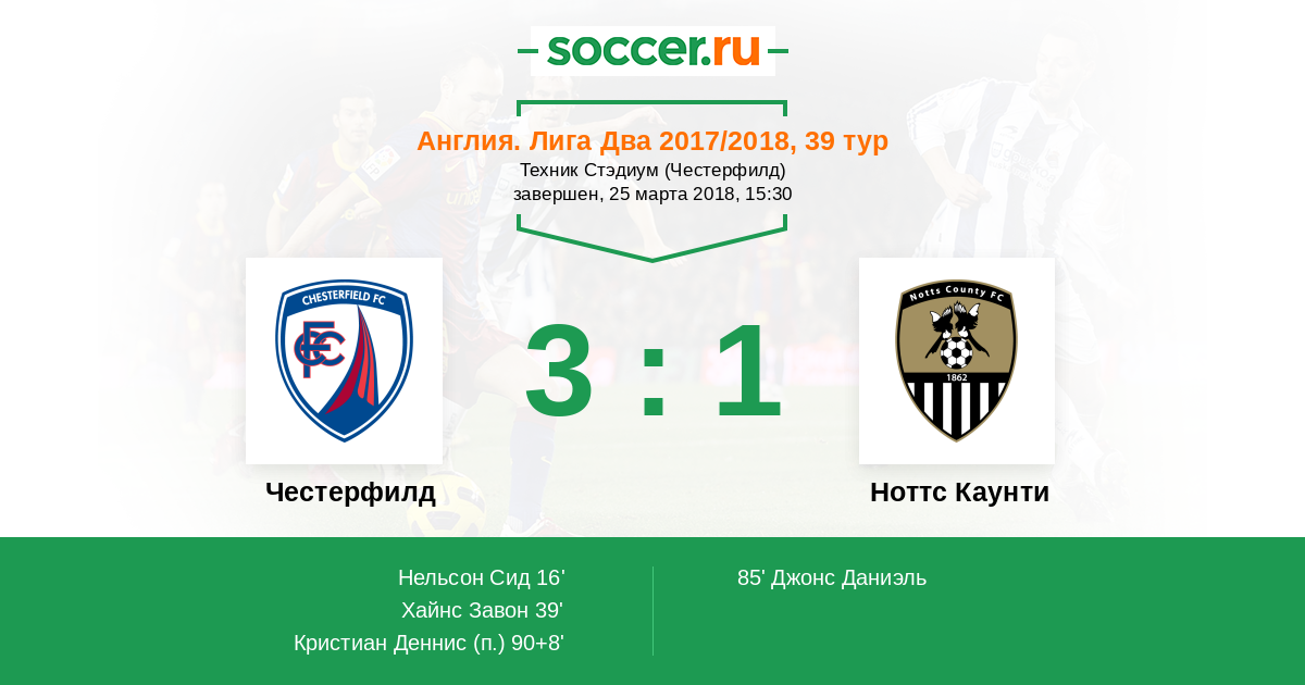 16' (1:0) Нельсон Сид (35) (Келлетт Энди (24))
