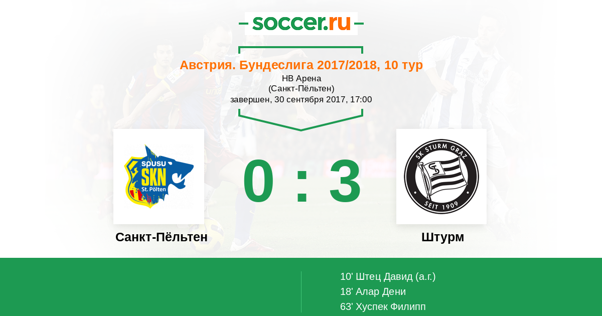 18' (0:2) Алар Дени (9) (Хирлендер Штефан (25))