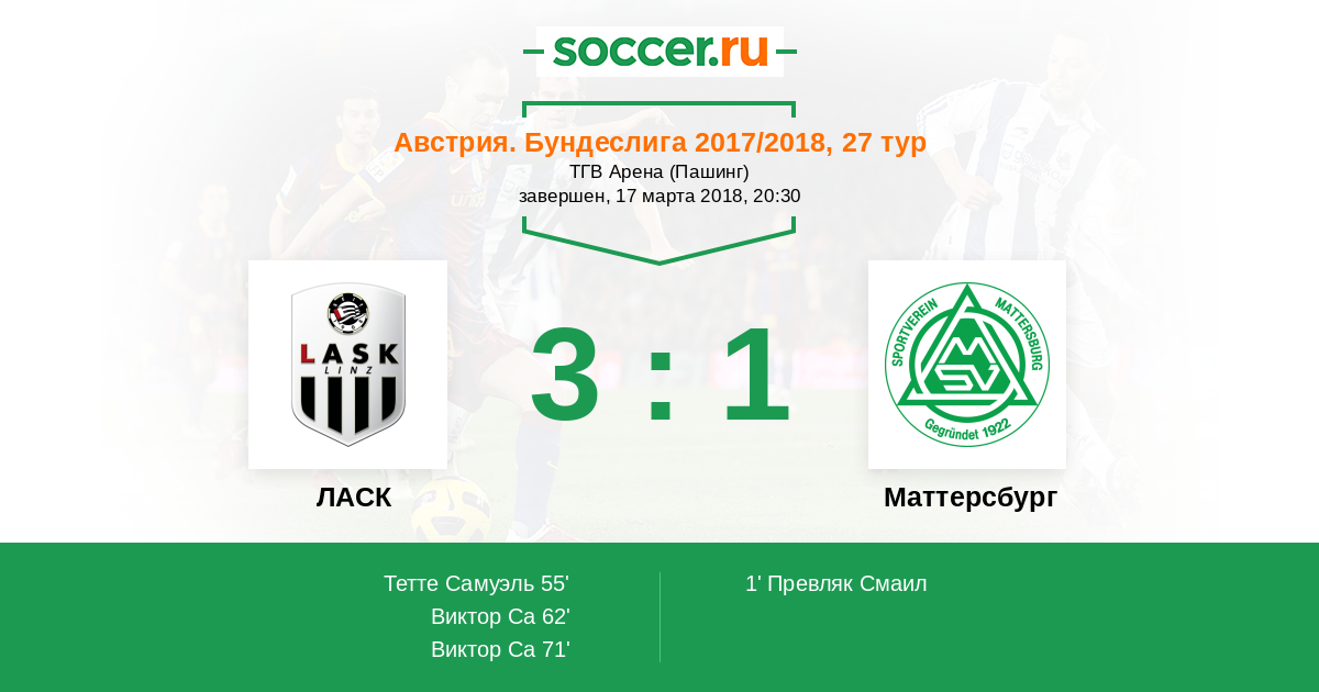 62' (2:1) Виктор Са (29) (Ранфтль Рейнхолд (26))