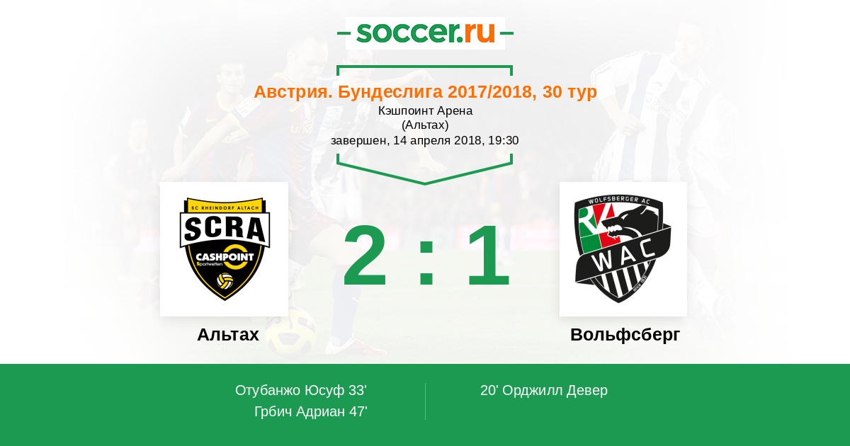 33' (1:1) Отубанжо Юсуф (14) (Гебауэр Кристиан (9))