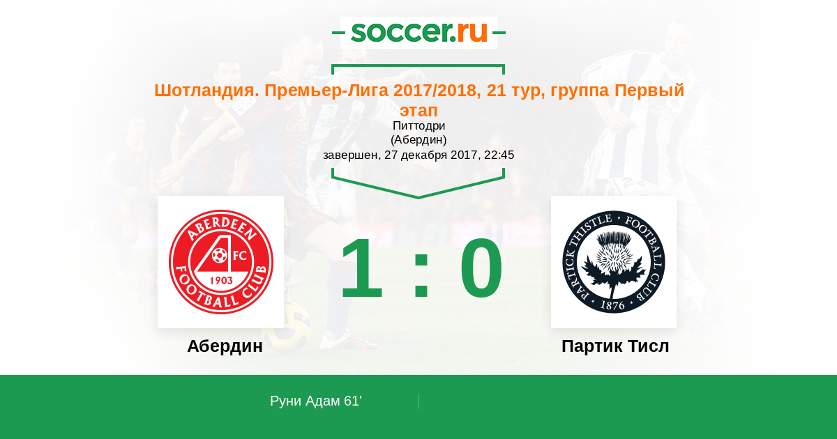 61' (1:0) Руни Адам (9) (Кристи Райан (22))