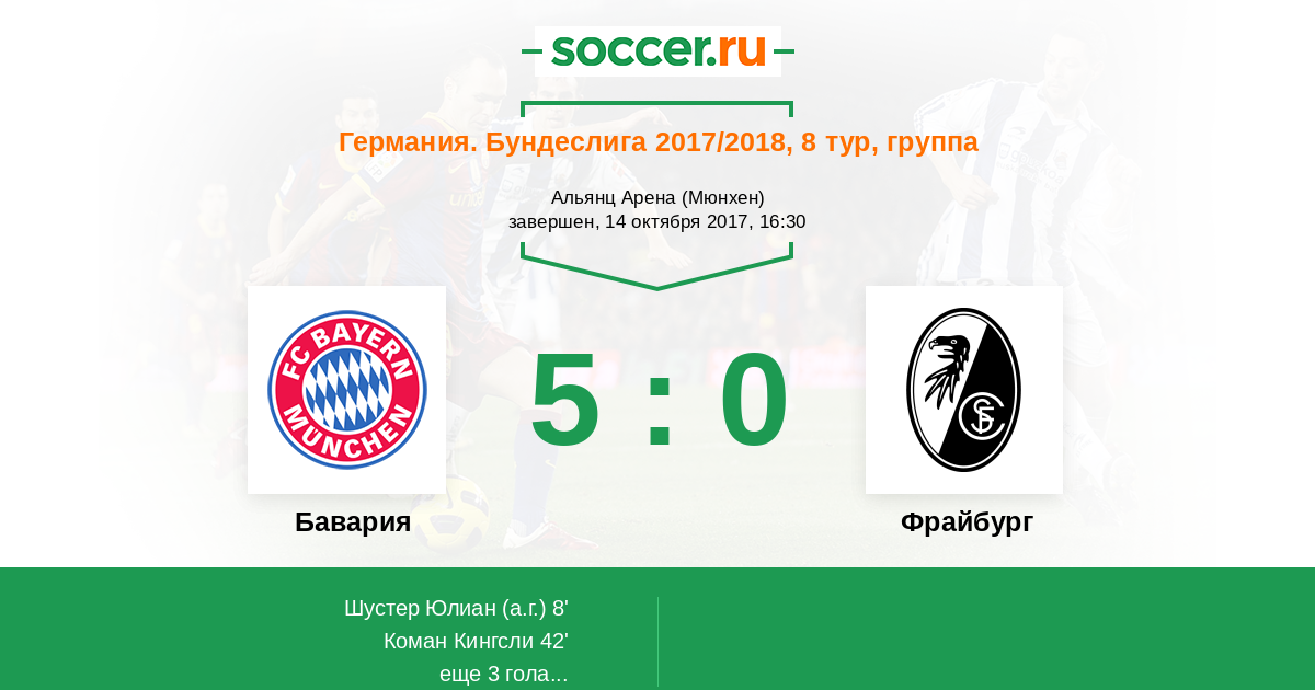 8' (1:0) Автогол Шустер Юлиан (23)
