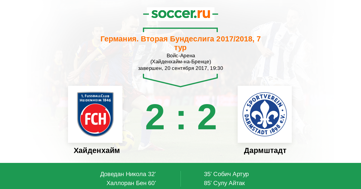 85' (2:2) Сулу Айтак (4) (Кемпе Тобиас (11))