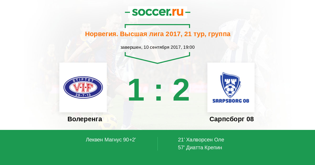 21' (0:1) Халворсен Оле (7) (Йоргенсен Йоахим (11))