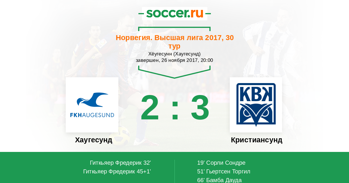 45+1' (2:1) Гиткьяер Фредерик (9)