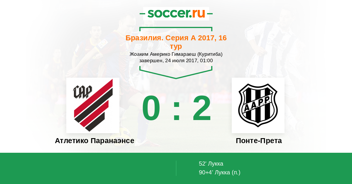 52' (0:1) Лукка (9) (Ренато Каха (20))