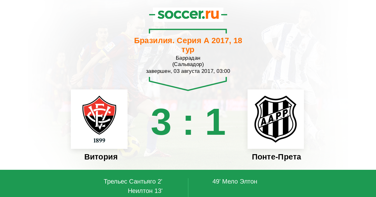 2' (1:0) Трельес Сантьяго (22) (Неилтон (10))