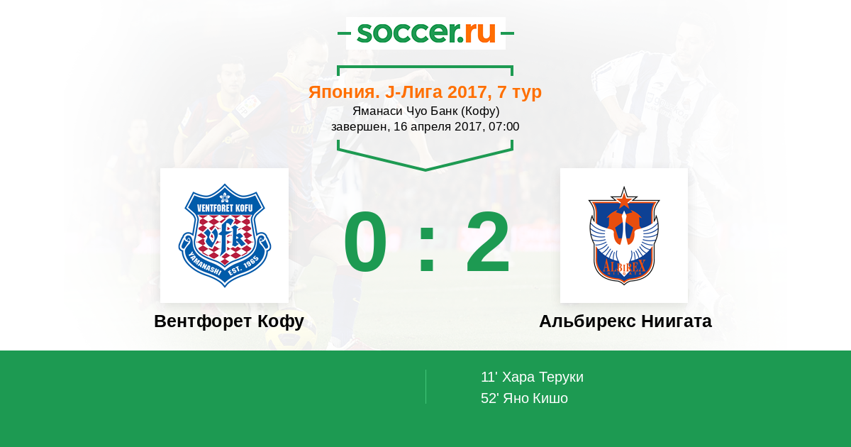 11' (0:1) Хара Теруки (34) (Томисава Сейтаро (50))