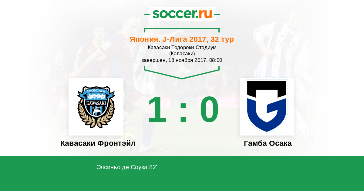82' (1:0) Элсиньо де Соуза (18) (Акихиро Иэнага (41))