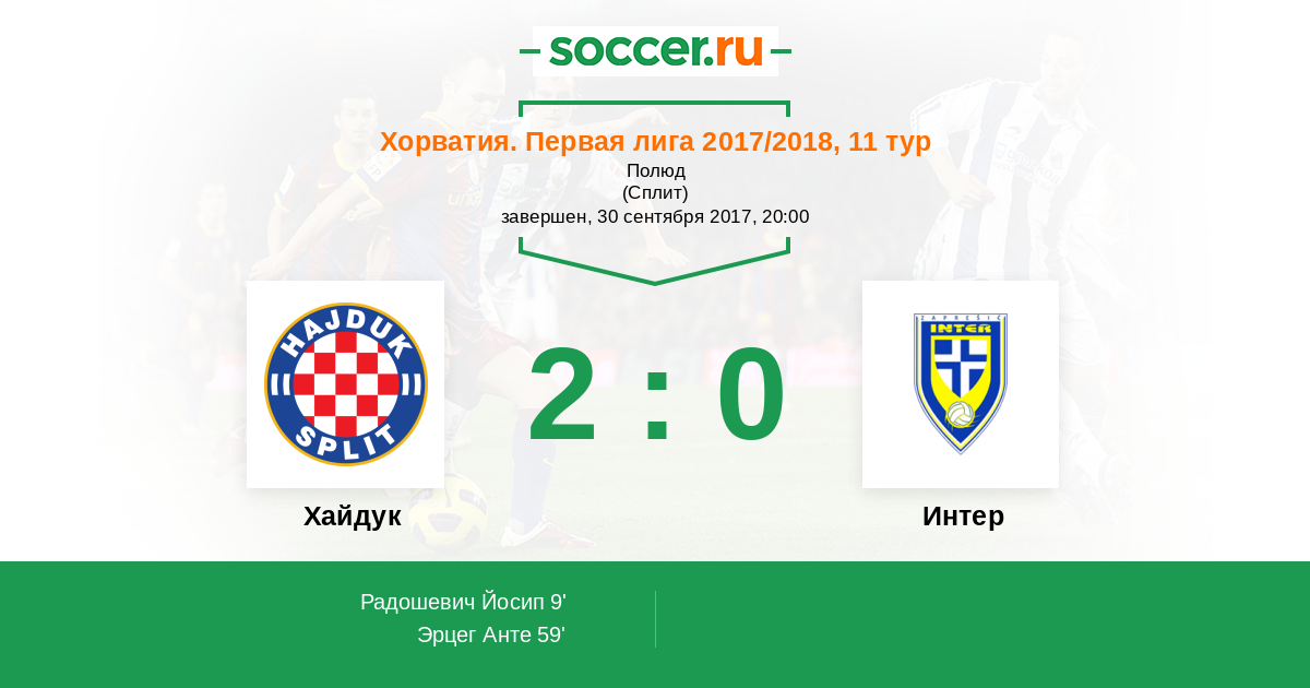 59' (2:0) Эрцег Анте (50)