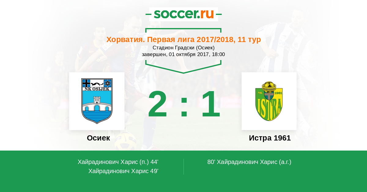 80' (2:1) Автогол Хайрадинович Харис (30)
