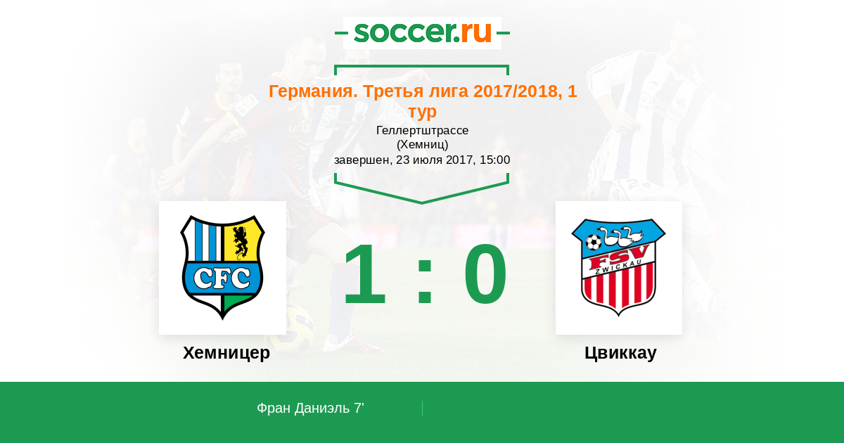 7' (1:0) Фран Даниэль (11) (Млыниковски Маркус (25))