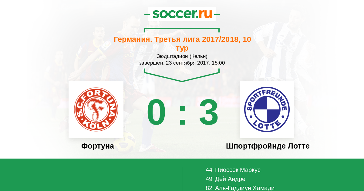 44' (0:1) Пиоссек Маркус (17) (Аль-Гаддиуи Хамади (18))