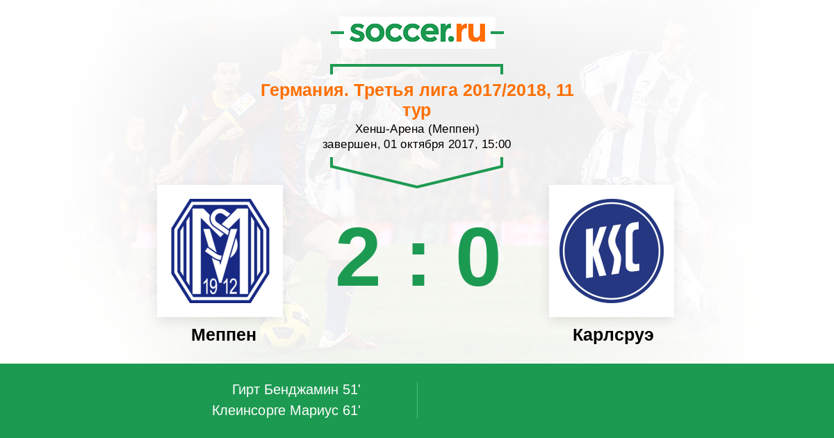 61' (2:0) Клеинсорге Мариус (20) (Гранатовски Нико (9))