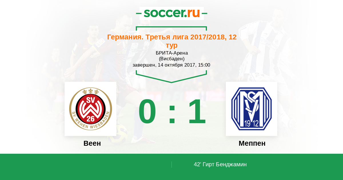 42' (0:1) Гирт Бенджамин (30)