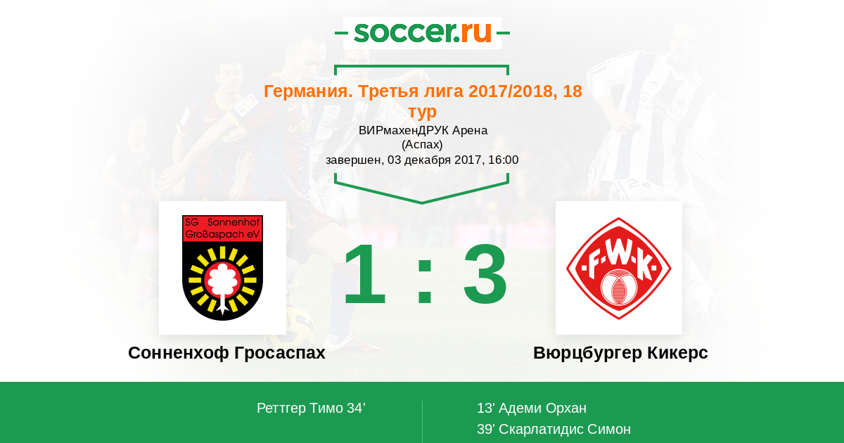 34' (1:1) Реттгер Тимо (18) (Хэгеле Даниэль (22))