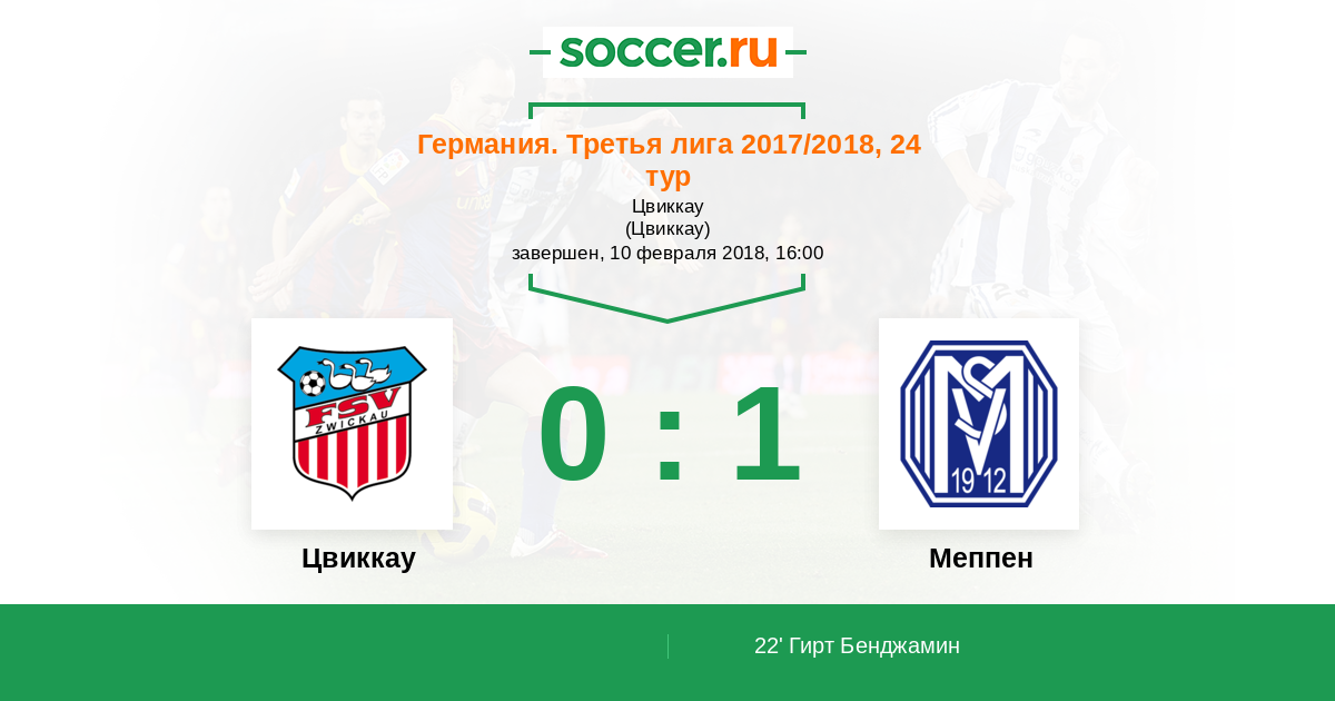 22' (0:1) Гирт Бенджамин (30) (Балмерт Маркус (15))