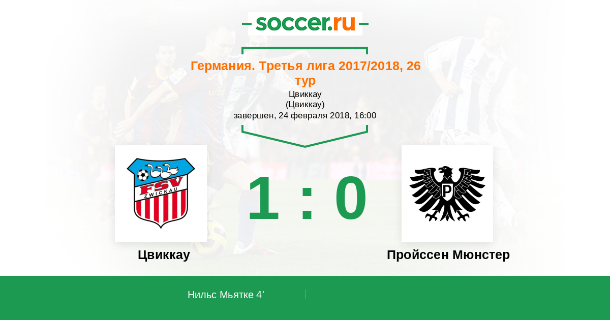 4' (1:0) Нильс Мьятке (28) (Ланге Рене (20))