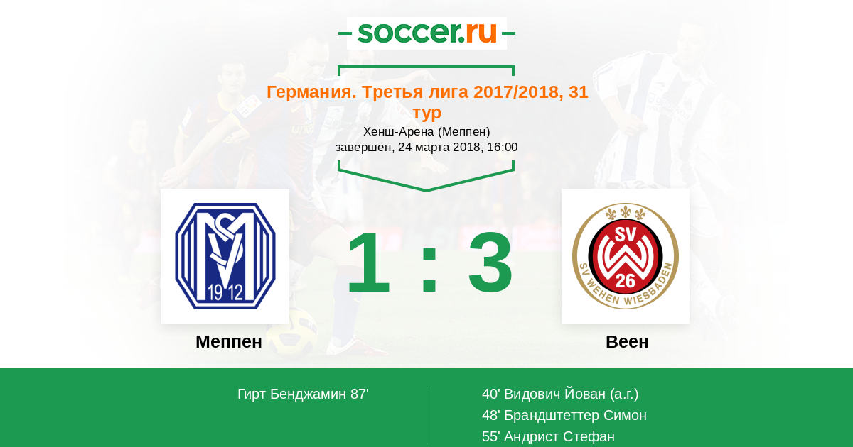 87' (1:3) Гирт Бенджамин (30) (Гранатовски Нико (9))