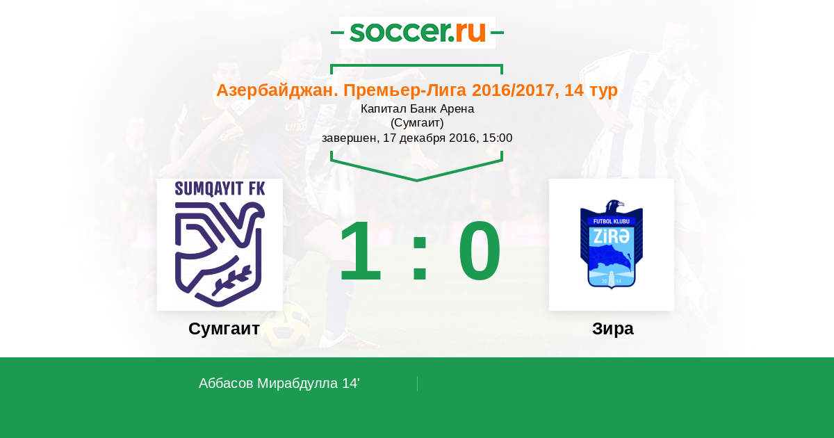 14' (1:0) Аббасов Мирабдулла (22)