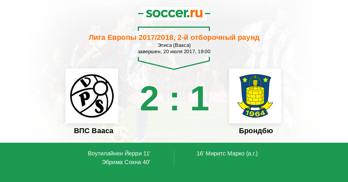 16' (1:1) Автогол Миритс Марко (1)