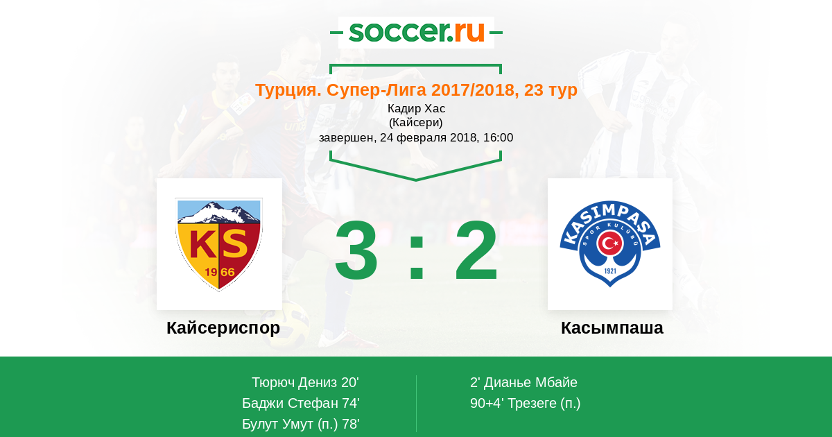 20' (1:1) Тюрюч Дениз (10) (Кас Эркан (39))