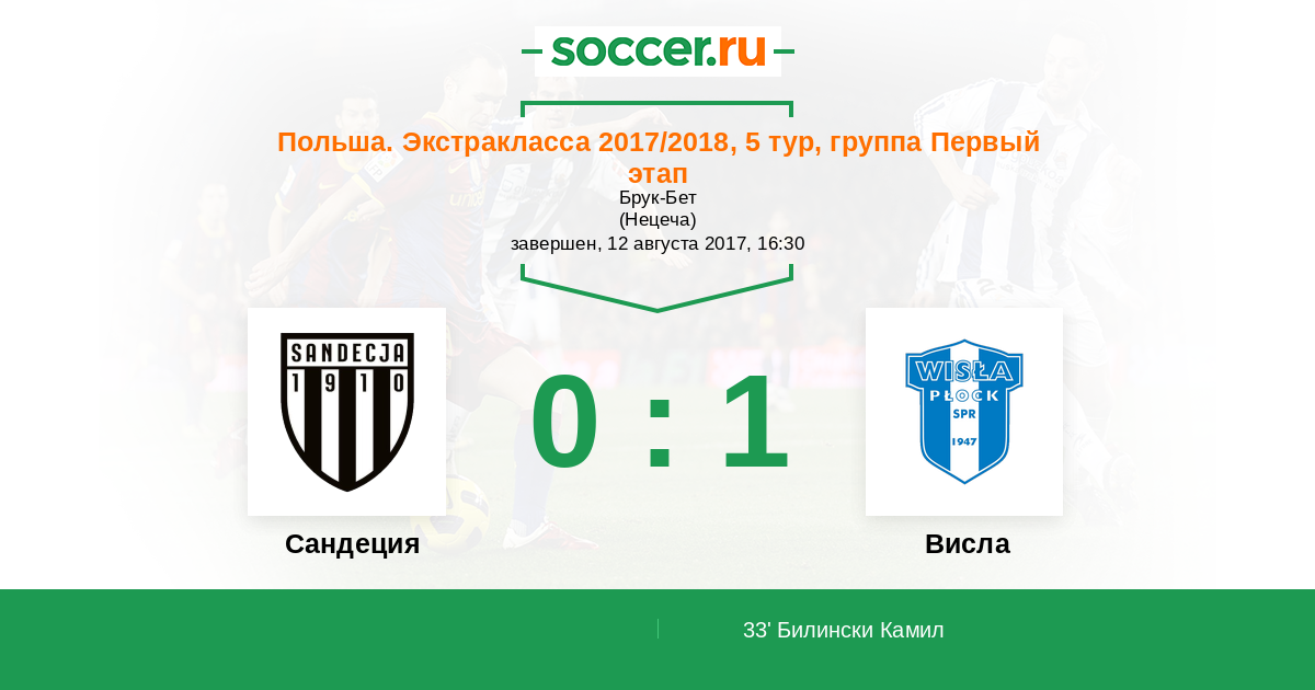 33' (0:1) Билински Камил (19) (Фурман Доминик (8))