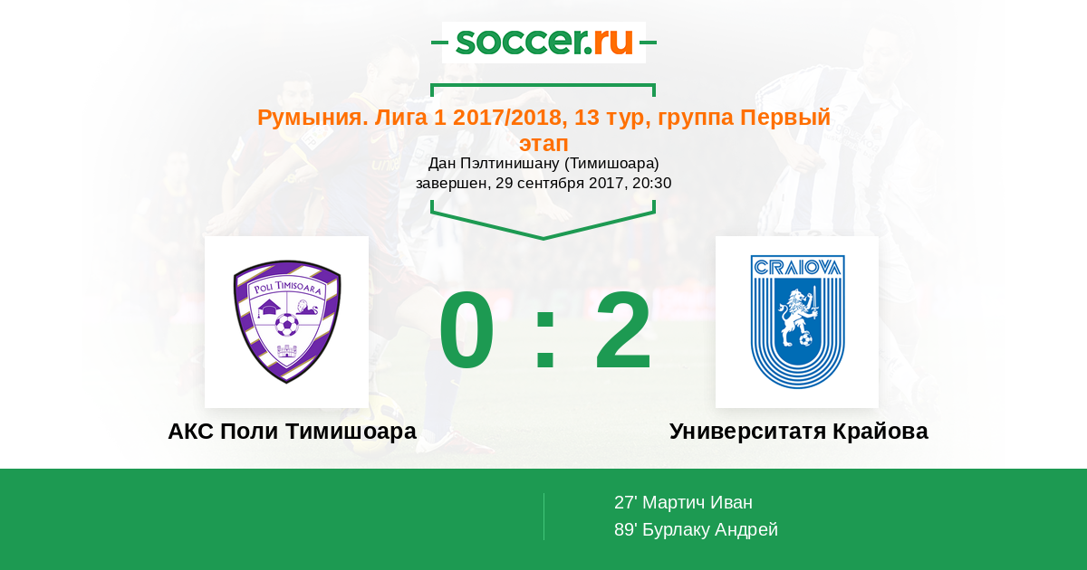 27' (0:1) Мартич Иван (27) (Бэлуцэ Александру (10))