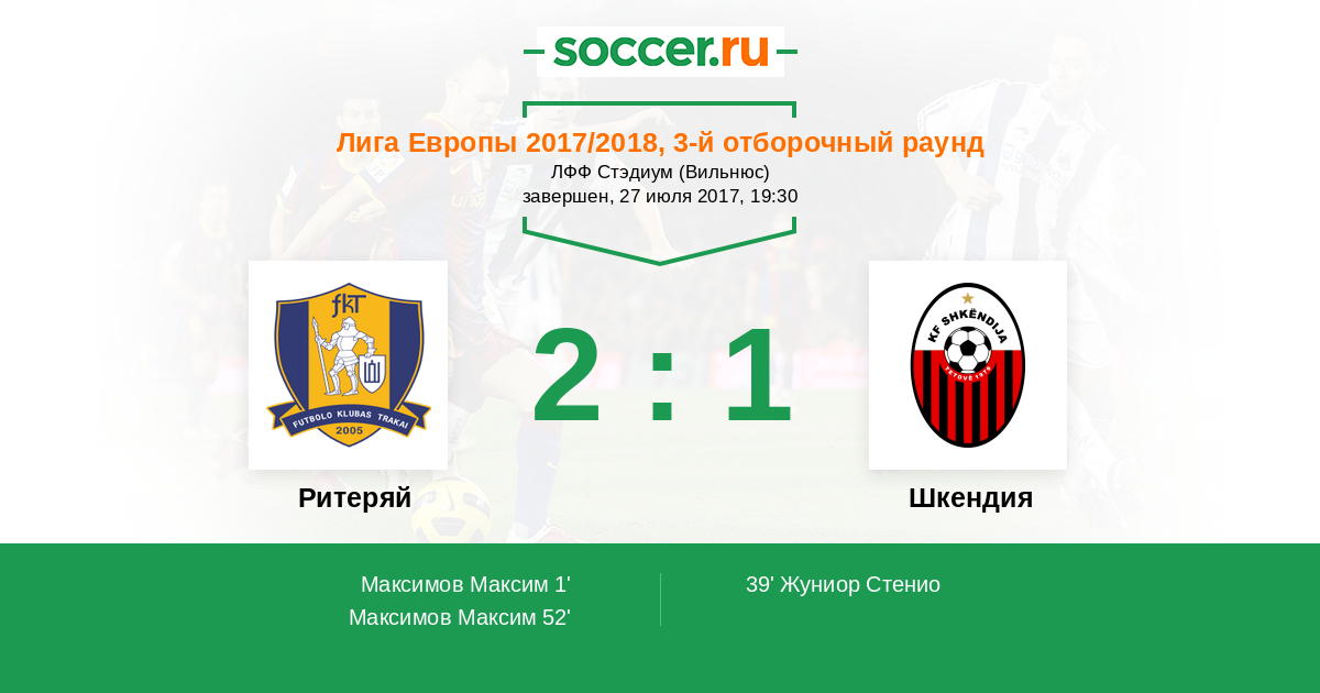 39' (1:1) Жуниор Стенио (18)