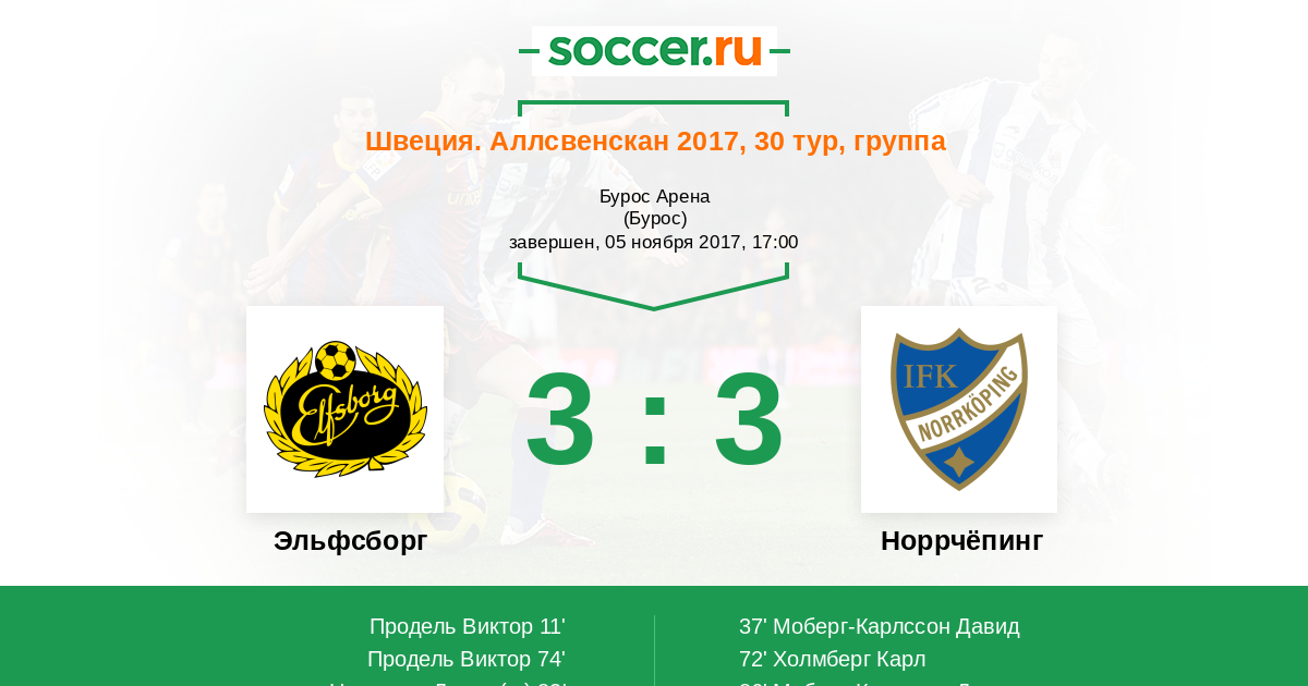 37' (1:1) Моберг-Карлссон Давид (11)