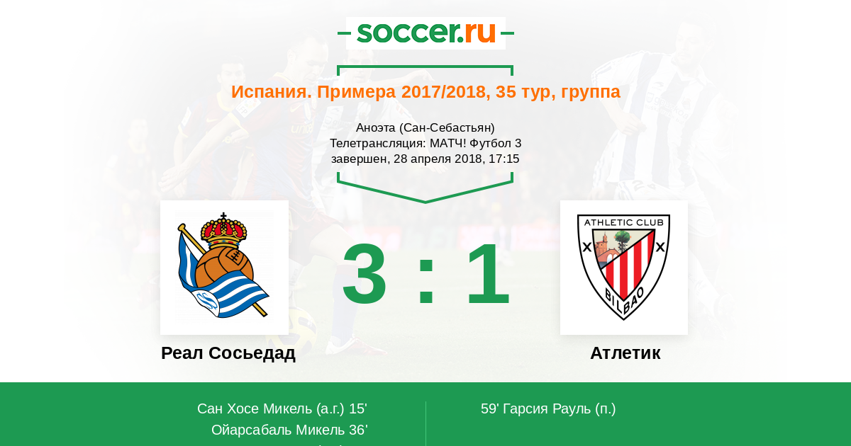 54' (3:0) Автогол Сан Хосе Микель (6)