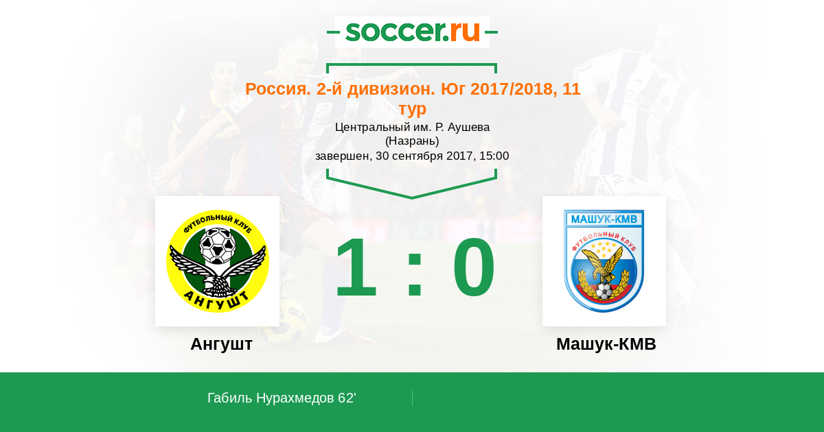 Запасные: Ахильгов Алисхан (с 70'), Дзейтов Аслан (с 71'), Алиев Бекхан (с 81'), Янурсаев Магомед (с 89'), Албогочиев Ибрагим (с 90')