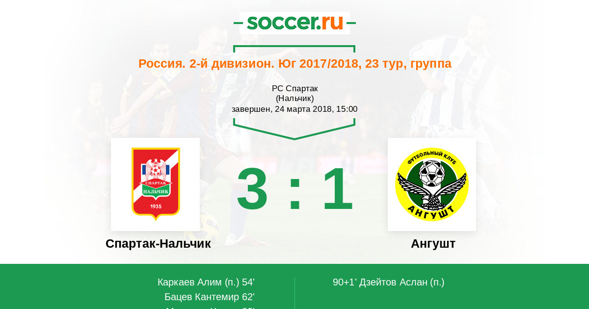 Запасные: Дзейтов Аслан (с 55'), Ахмед Пугиев (с 69'), Янурсаев Магомед (с 69'), Ахильгов Абдулхамид (с 89'), Албогочиев Ибрагим (с 89')