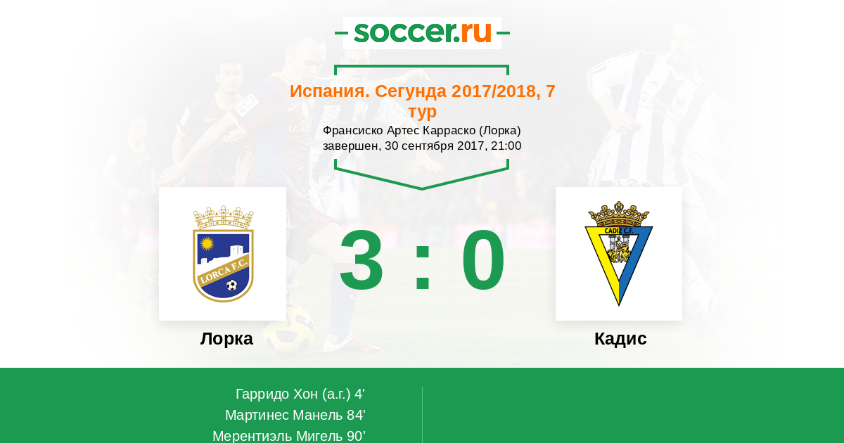 Запасные: 10 Крус Рубен (с 46'), 21 Каррильо Хосе (с 46'), 8 Переа Альберто (с 79'), 4 Вильянуэва Микел, 13 Яньес Рубен, 18 Алекс, 22 Моха