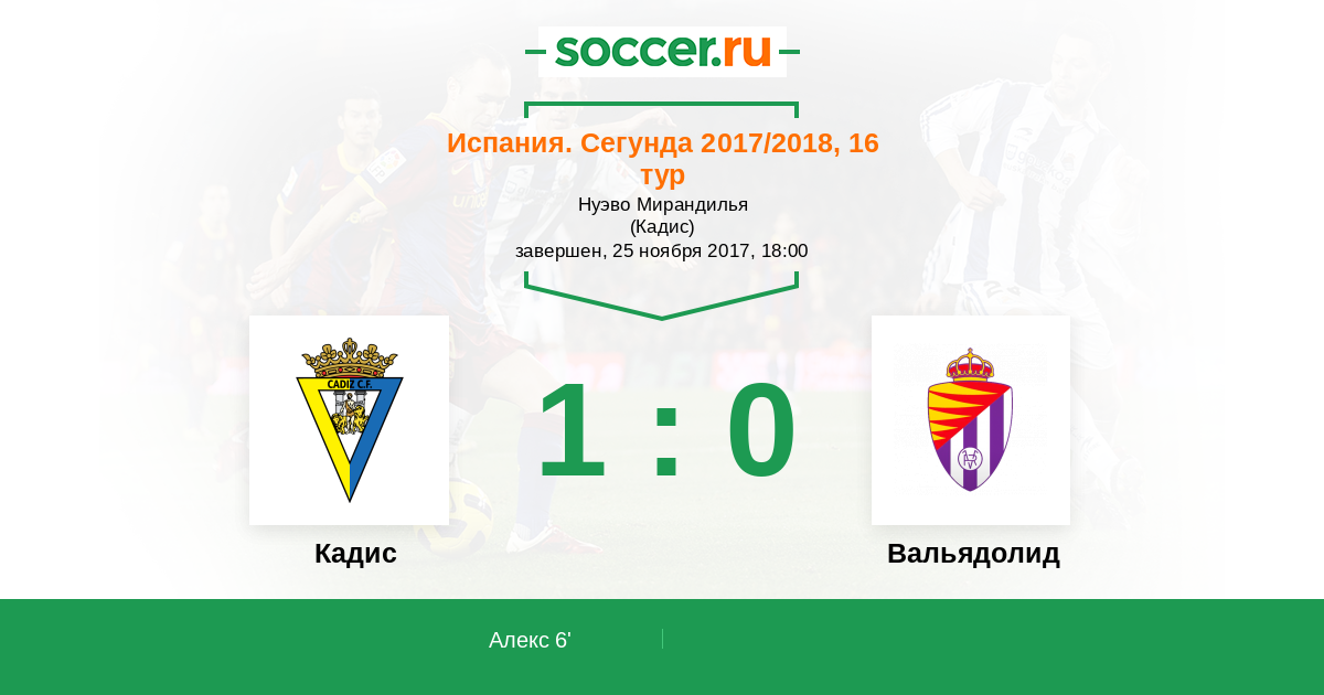 6' (1:0) Алекс (18) (Вильянуэва Микел (4))