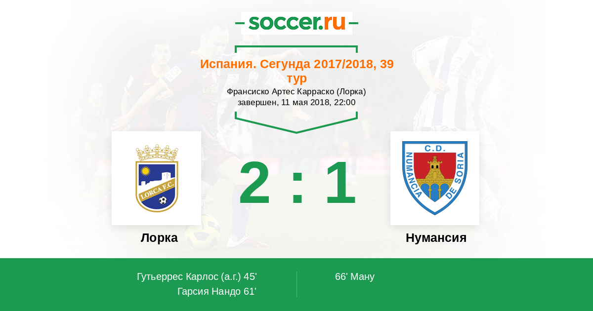 61' (2:0) Гарсия Нандо (12) (Пенья Карлос (20))