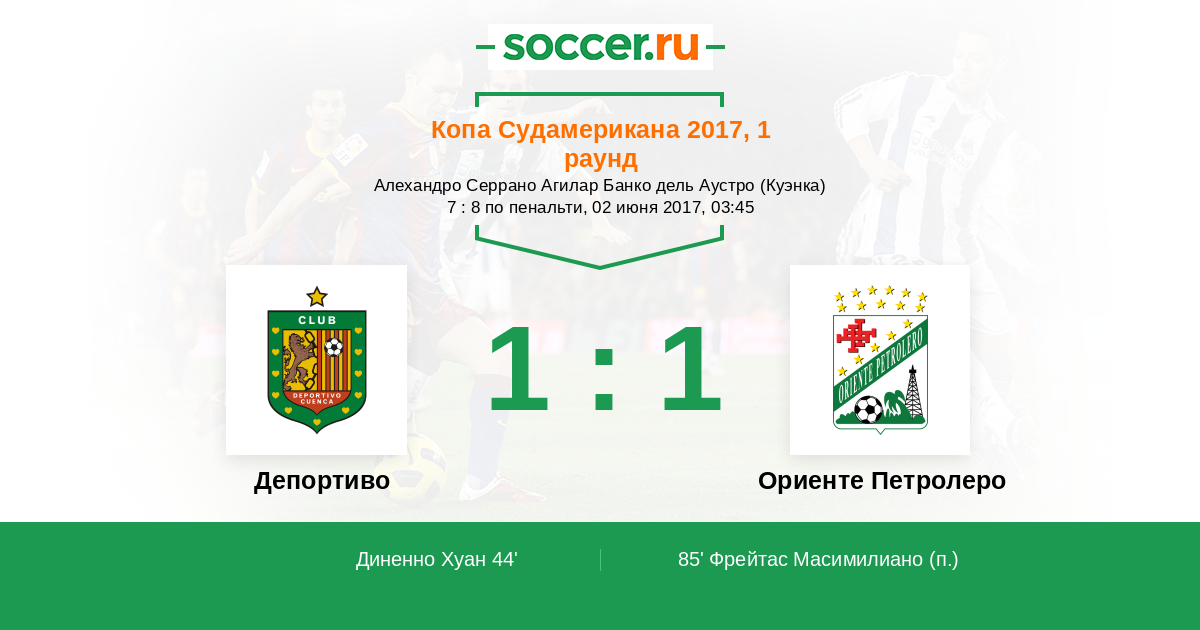 44' (1:0) Диненно Хуан (29) (Пресиадо Эдисон (13))