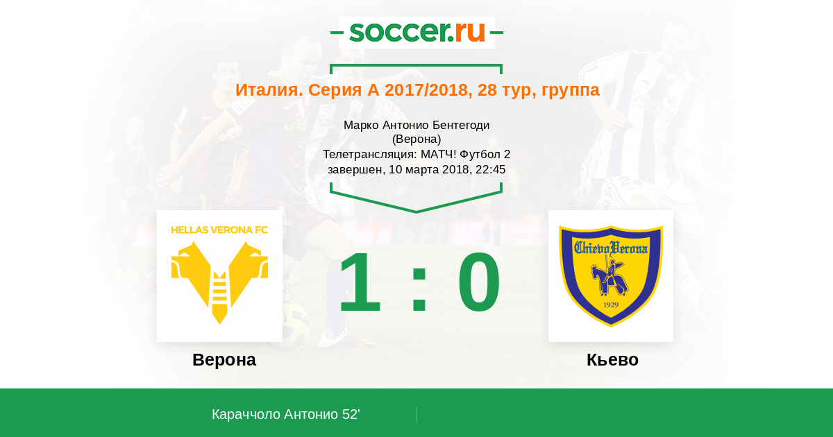 52' (1:0) Караччоло Антонио (12) (Верде Даниэле (7))