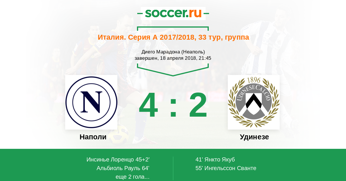Запасные: 14 Мертенс Дрис (с 57'), 5 Аллан (с 73'), 30 Рог Марко (с 82'), 11 Маджо Кристиан, 22 Сепе Луиджи, 19 Милич Хрвойе, 1 Кабрал Рафаэль, 21 Кирикеш Влад, 8 Жоржиньо, 27 Машаш Зинедин, 37 Унас Адам, 18 Леандриньо