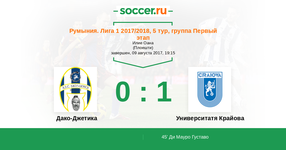 45' (0:1) Ди Мауро Густаво (7) (Роман Михай (70))